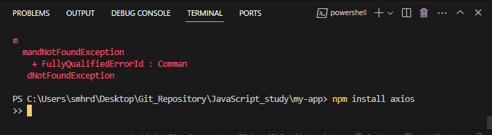 npm install axios >> axios패키지 설치