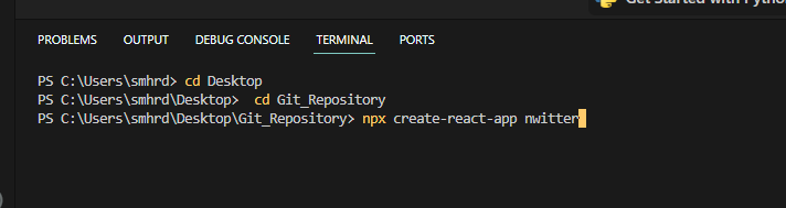터미널에 code nwitter를 입력하여 새창으로 프로젝트 오픈