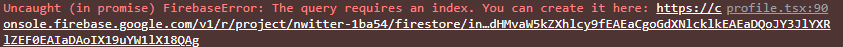 위 코드까지 작성하면 만들려는 쿼리에 인덱스가 필요하다고 오류가 뜬다.